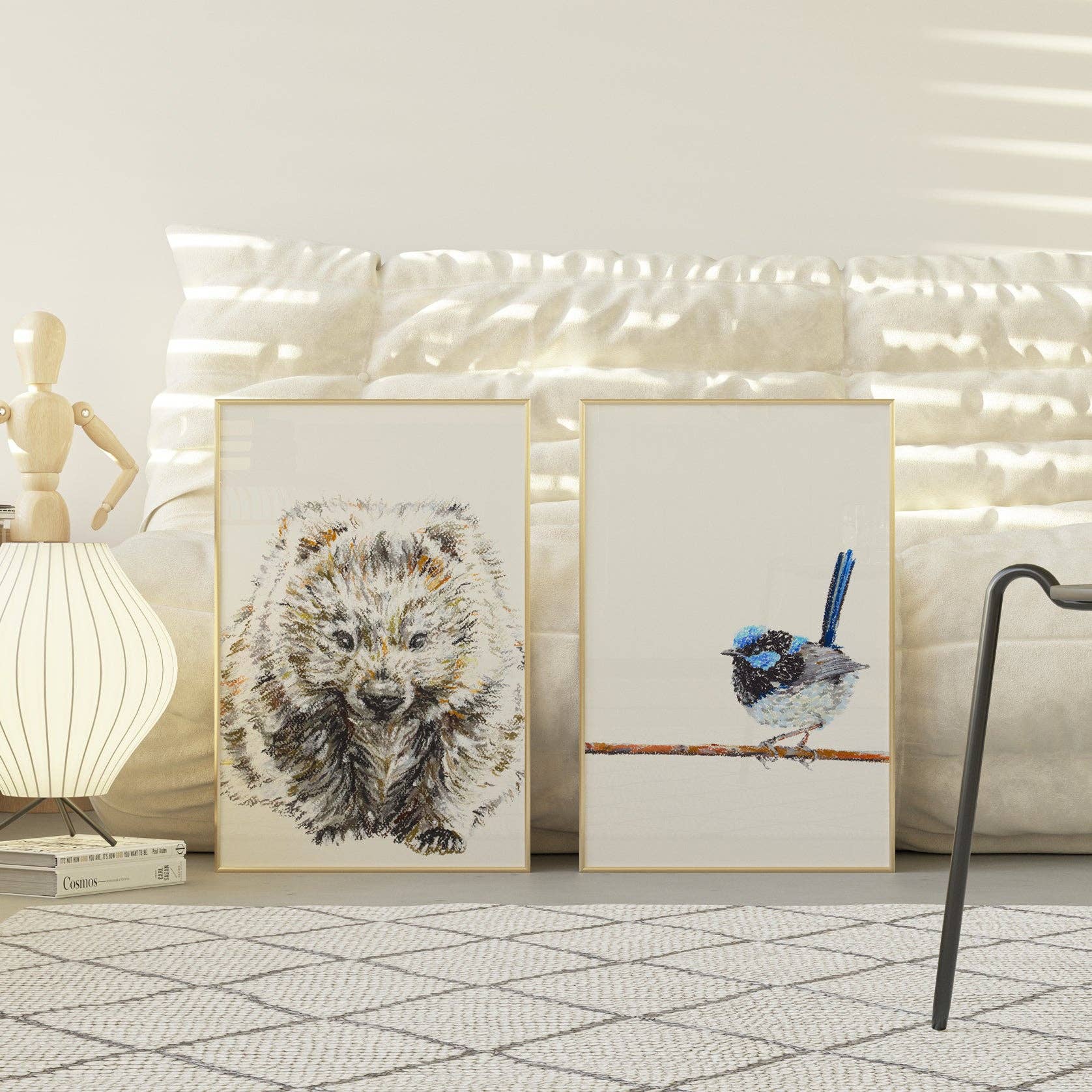 Inspired by Australian native animals, this adorable + chonky wombat art print is part of a set of 6 oil pastel drawings of mine. The texture of the original artwork (which comes across beautifully in this print!), paired with the warm earthy / boho tones, makes this wombat great for hanging in a nursery, kids bedroom or as a living room statement piece. Perfect for nature lovers, wildlife enthusiasts, and anyone looking to add Aussie-inspired art to their decor. This print looks great on its own or as part of a set!