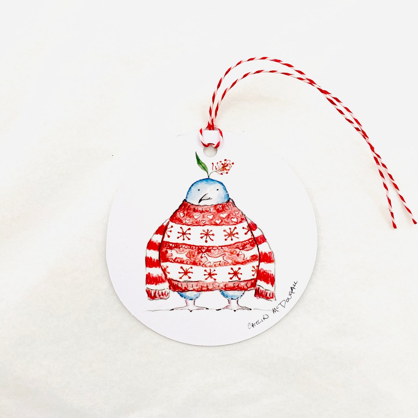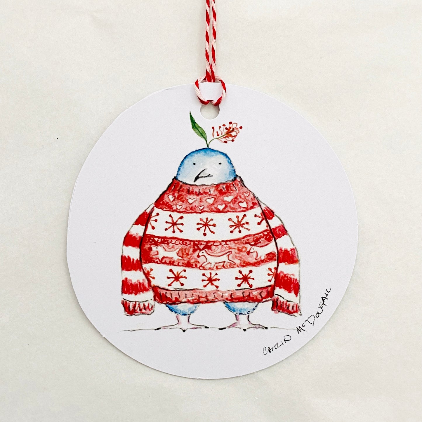 Caitlin McDougall Gift Tag Red Sweater Penguin