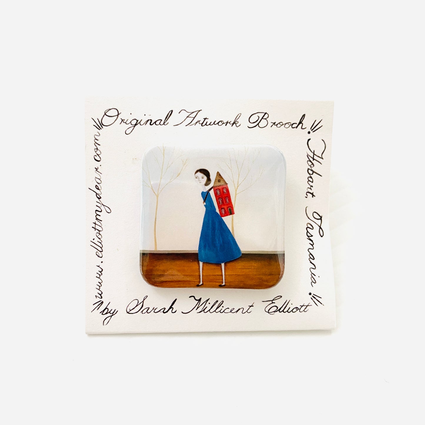 This Brooch features a reproduction of an original artwork by Sarah Elliott. Handmade in Hobart.
