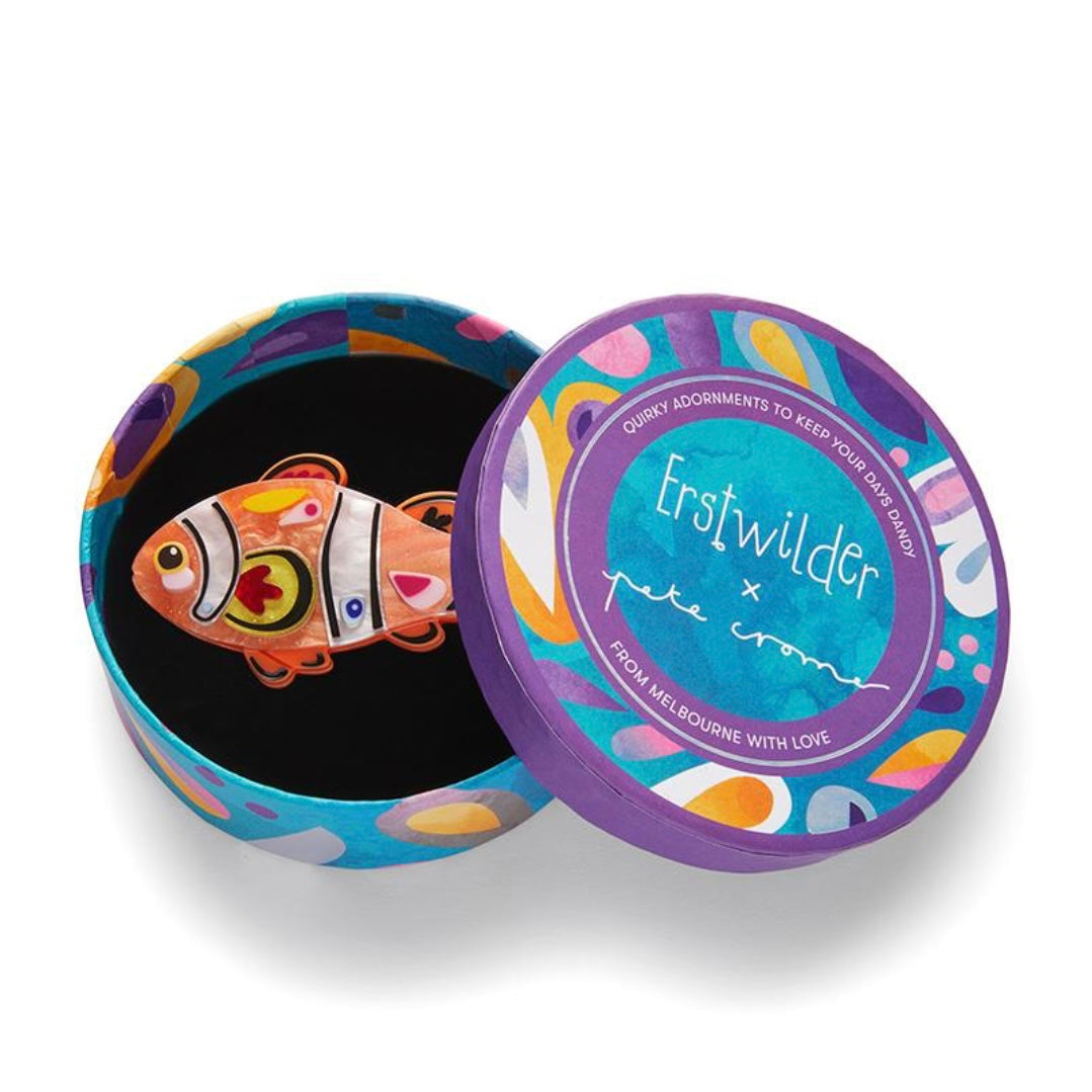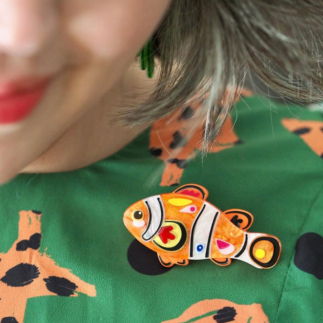 Stunning, hand-assembled resins bring this colourful clownfish brooch to life, its distinct patterns making it easy to find in a fishtank, the ocean depths, or pinned to your favourite outfit. Part of the Pete Cromer Australian Sea Life collection, this charming swimmer makes a compelling companion piece when paired with our coral-inspired Essential earrings or with its own matching enamel pin.