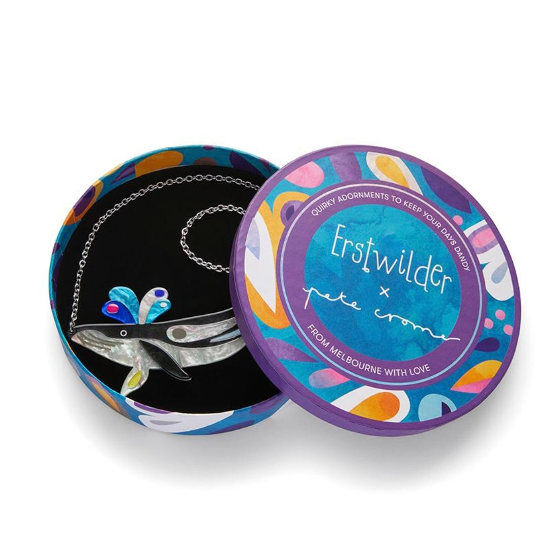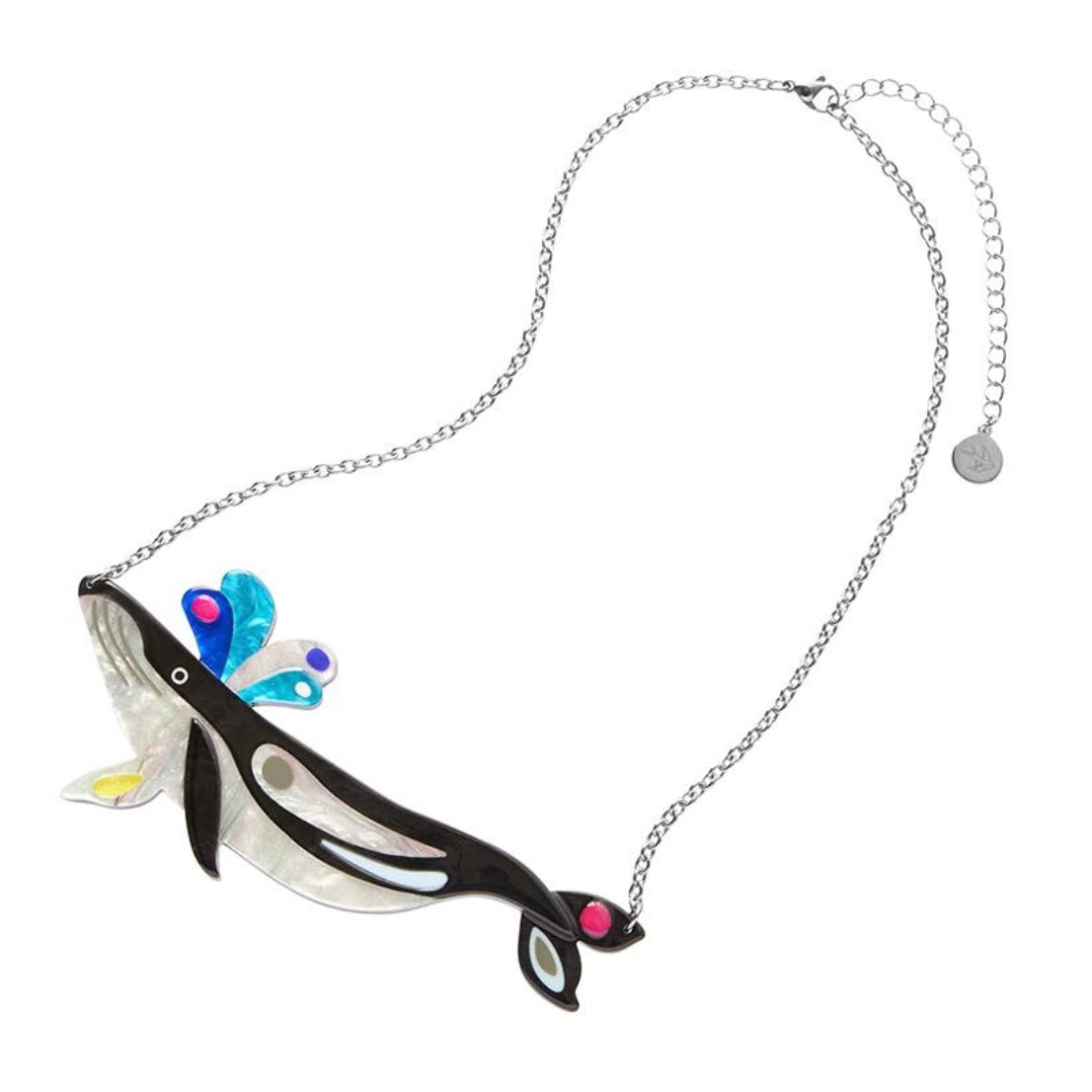Magnificent, hand-assembled resins bring this awe-inspiring humpback whale necklace to life, its sheer stature adding some larger-than-life appeal when worn with your favourite outfit. Part of the Pete Cromer Australian Sea Life collection, this massive mammal makes a compelling companion piece when paired with its matching brooch or one of our Boastful Bottlenose Dolphin designs.