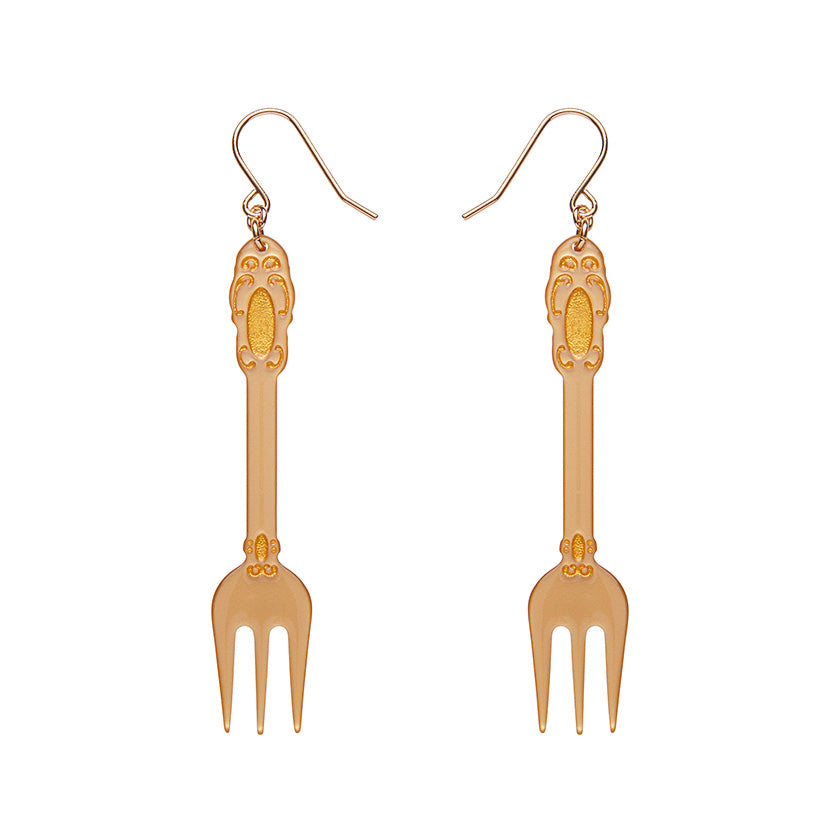 Fork goodness sake! Made from a metallic gold resin, and complete with classic etched details, these fork-inspired drop earrings are perfect for pairing with any other food-themed accessories. Then again, they're perfectly wearable on their own too!