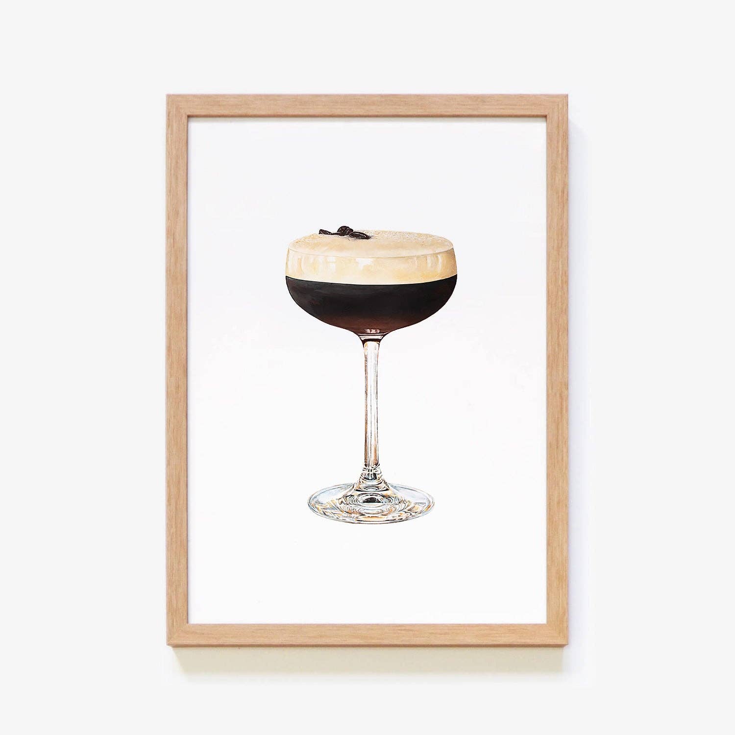 Espresso Martinis: because why choose between coffee and alcohol? Painted with watercolors, this art print would make a delicious addition to any bar, kitchen or living room area.