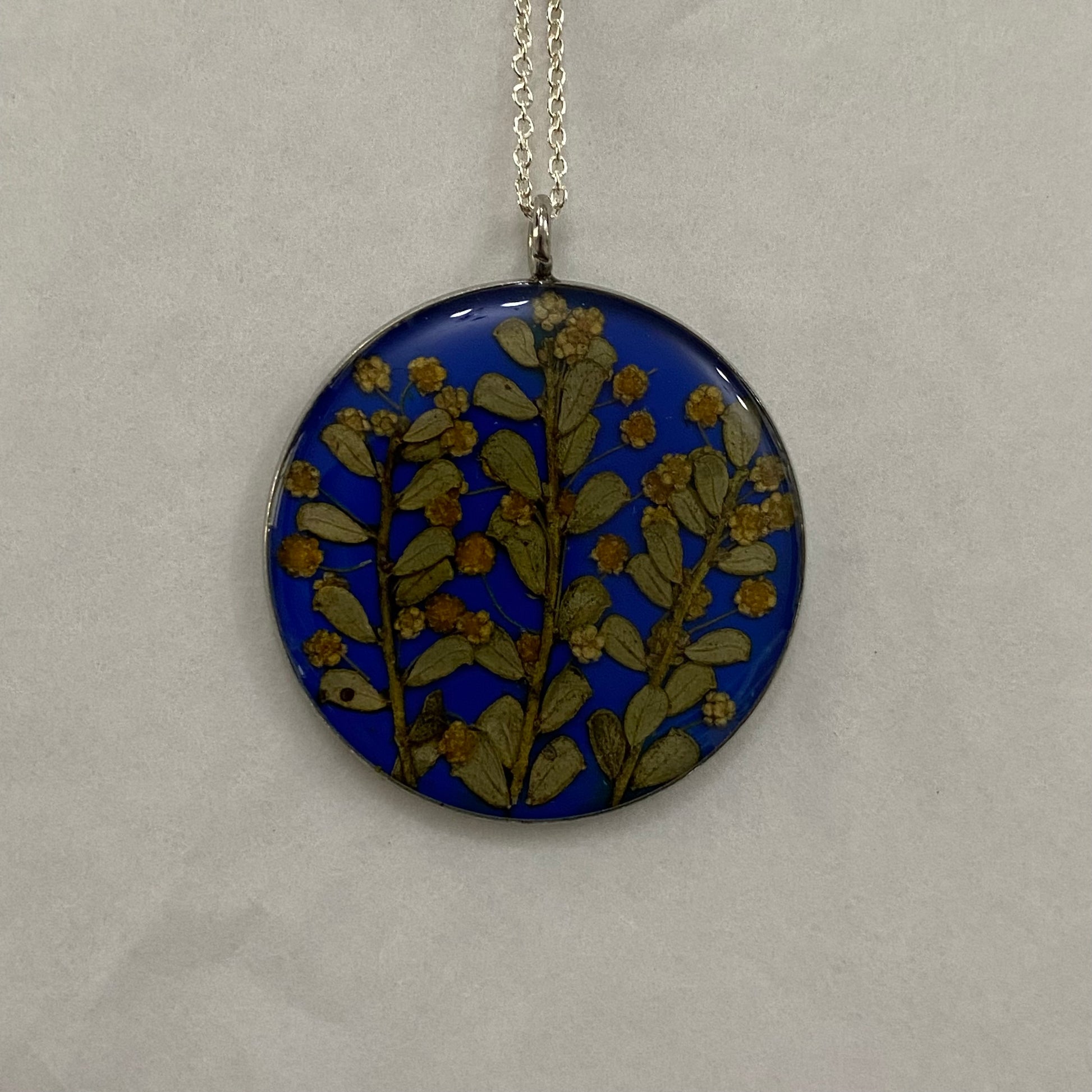 Botanical necklace with dried Australian wildflowers captured in resin.
