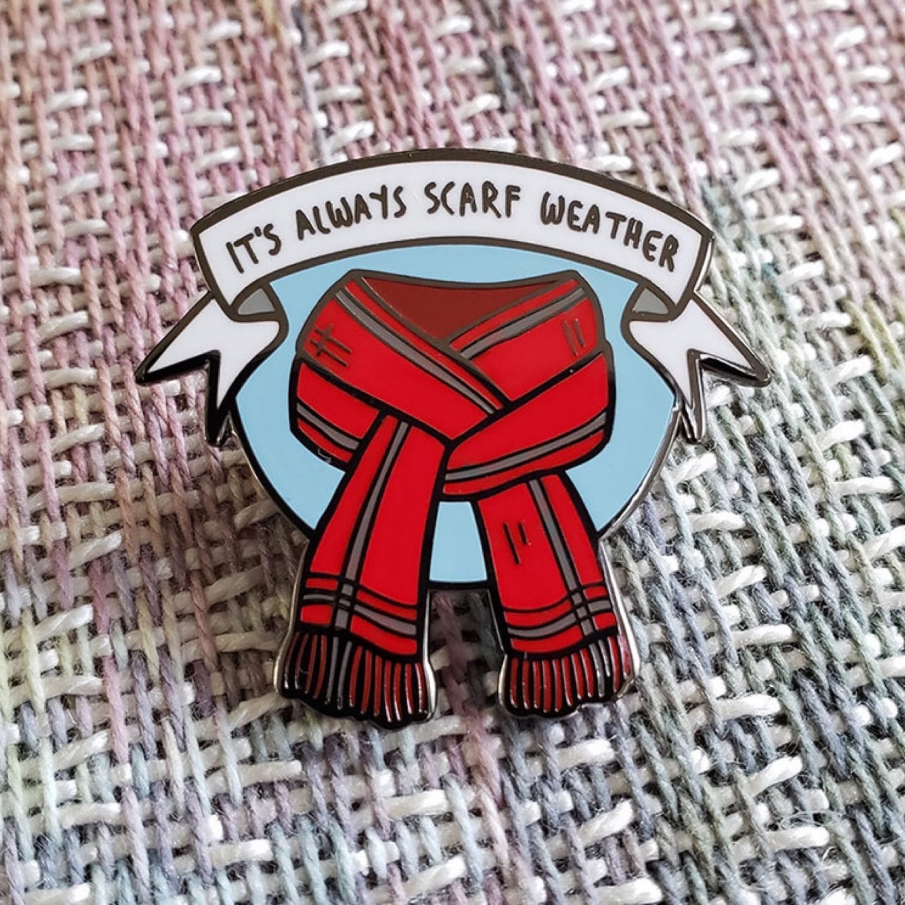 It’s always scarf weather, no matter what time of year it is, if you’re wearing this pin!
