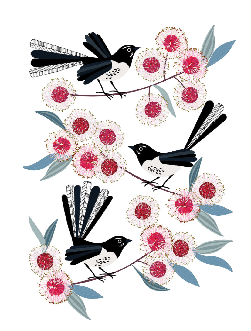This print is part of Jocelyn’s Australian native birds prints series. It is printed on heavyweight acid-free 100% cotton rag paper (308gsm) and signed by Jocelyn.