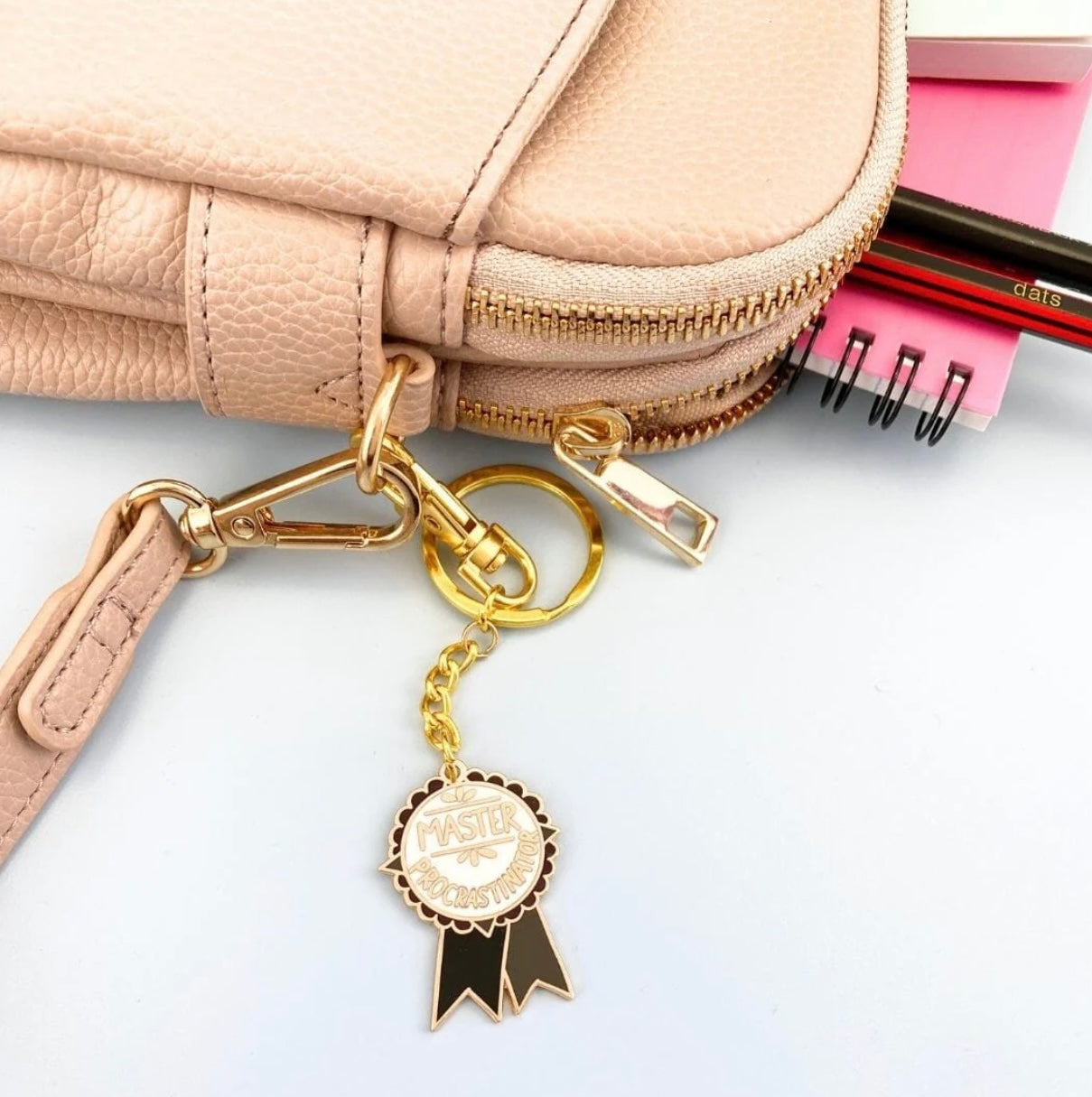 This colourful, gold-backed, hard enamel keychain comes beautifully presented on a Jubly-Umph backing card.