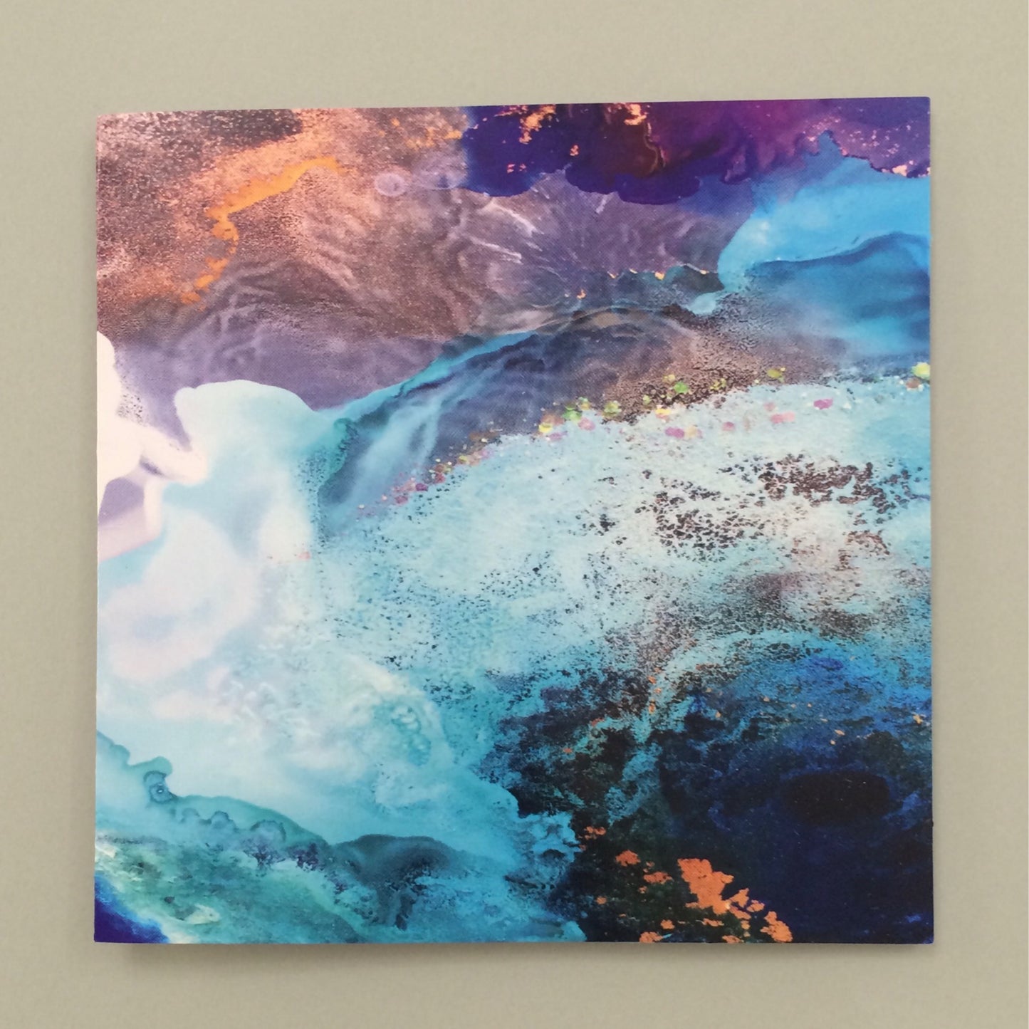 Printed on Standard glossy 250 gsm paper with a glossy front and silky back. 14 x 14cm with white envelope.