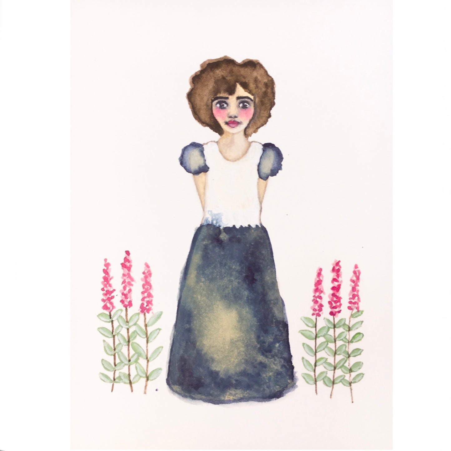 Michelle Hosking Original Watercolour Painting Girl With Salvias