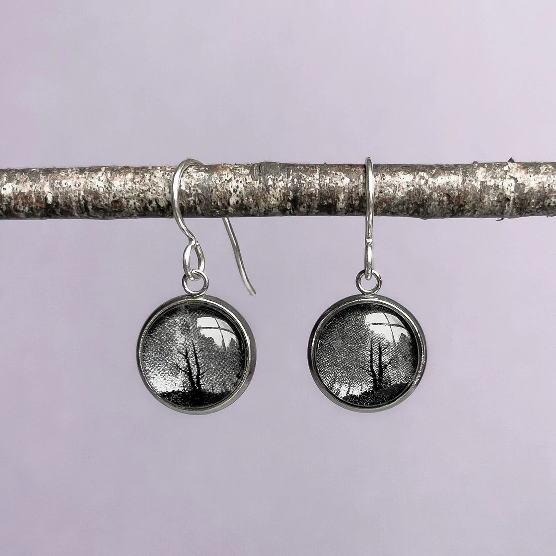 Designed and crafted in Tasmania's picturesque Meander Valley, Myrtle & Me's unique jewellery is both sustainable and beautiful. Handmade with love and a meticulous attention to detail, the jewellery is based on Joycelyn Parry-Jones' stunning photographs of Australian flora and fauna. With a passion for nature, Myrtle & Me creates a minimal environmental footprint, using sustainable materials wherever possible. Earrings are made from glass set into stainless steel. The hooks are solid recycled silver, which are excellent for sensitive ears Earring size: 14mm