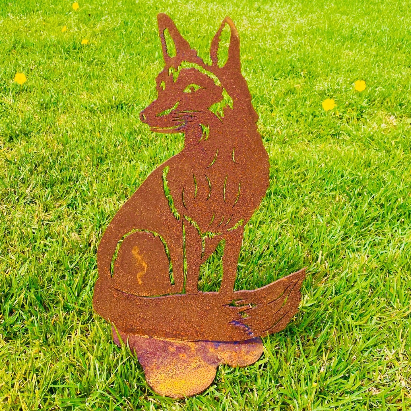 This Sitting Fox Stand garden art is made from mild steel which has developed a unique rust patina.
