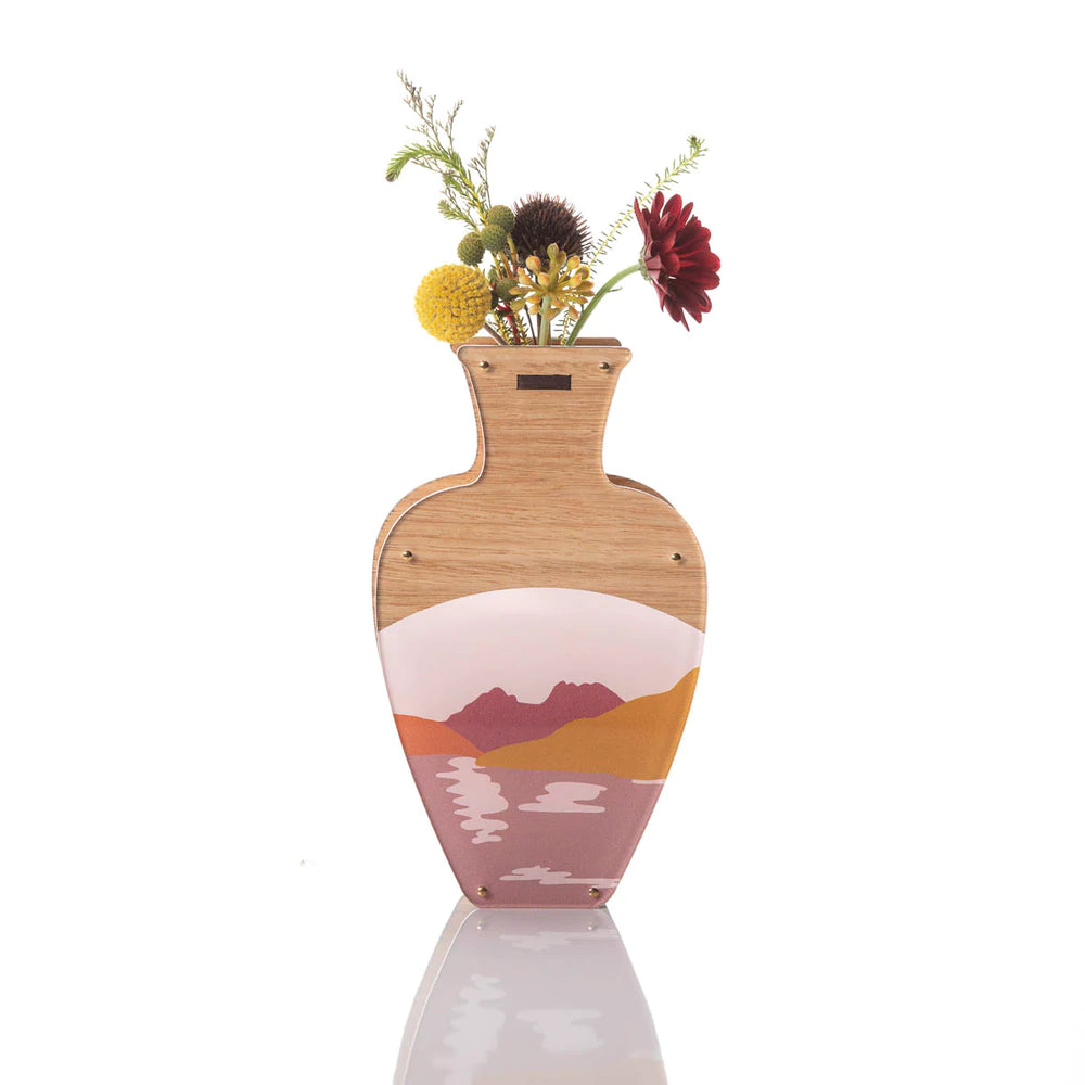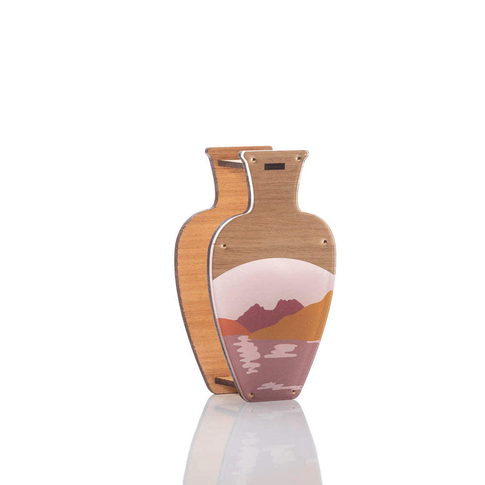 These beautiful vases are made from sustainably farmed Tasmanian Oak and feature one of Helen's paintings which is inspired by the fabulous Cradle Mountain in Tasmania, and paired with the most striking muted colour palette that takes your breath away.