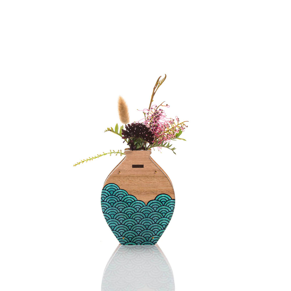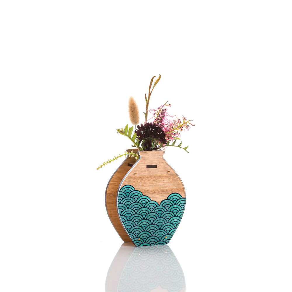 These beautiful vases are made from sustainably farmed Tasmanian Oak and feature one of Helen's abstract paintings which is inspired by a component from a vintage Japanese painting.