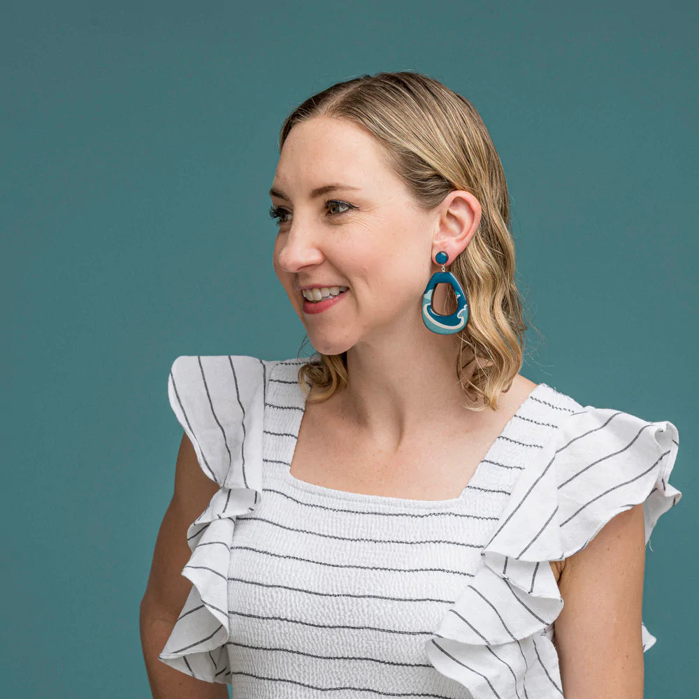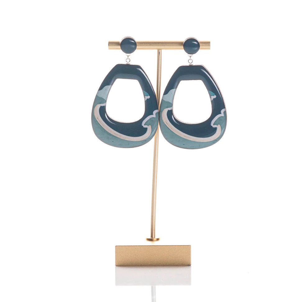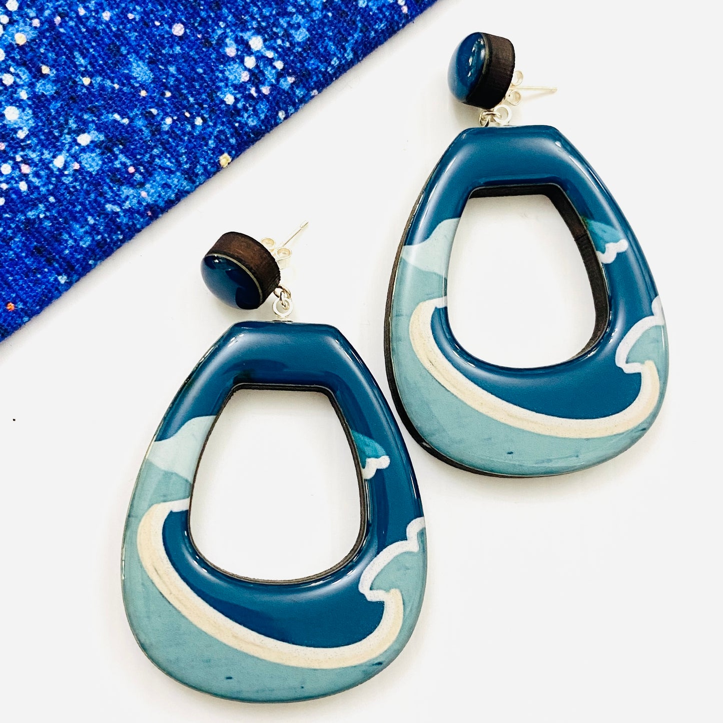 They’re comprise of a sustainably farmed Tasmanian blackwood base and are finished with a clear layer of resin. The stud post is solid sterling silver; no allergic reactions here!