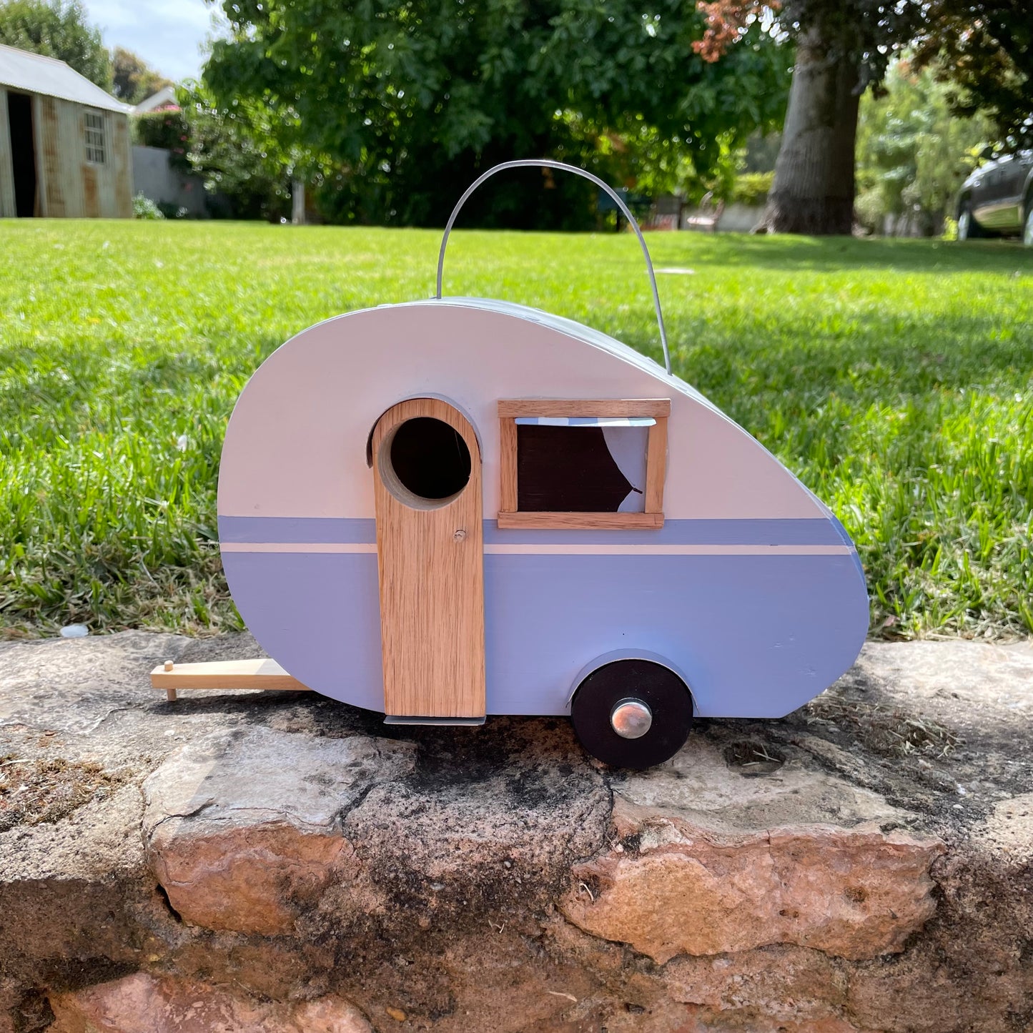 Retro Caravan Bird House Teardrop Blue (Hanging)