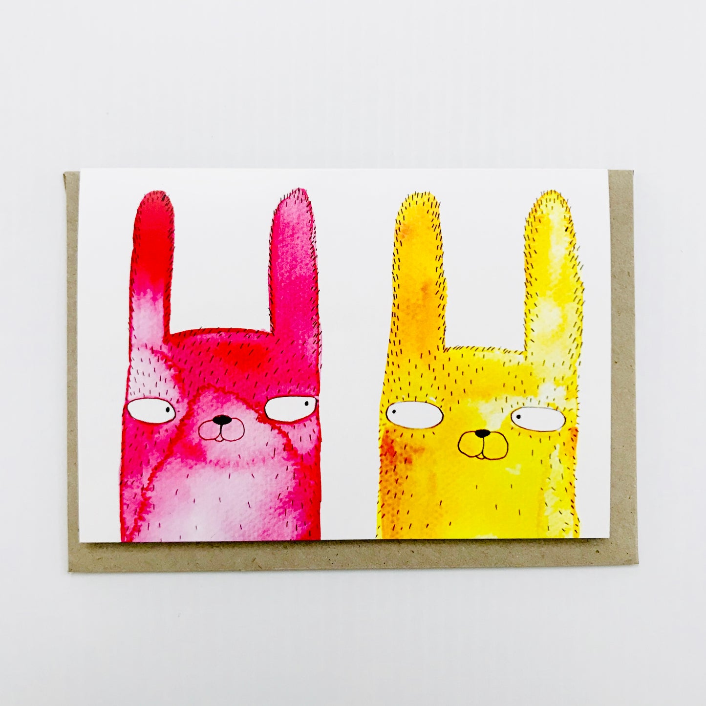 This greeting card features an original illustration by Luka Va. Standard card size - A6 (148x105mm). The card is blank inside and comes with a lovely textured recycled paper envelope with a sloth printed on it. Lightly shiny on the outside, matte - good for writing on the inside.